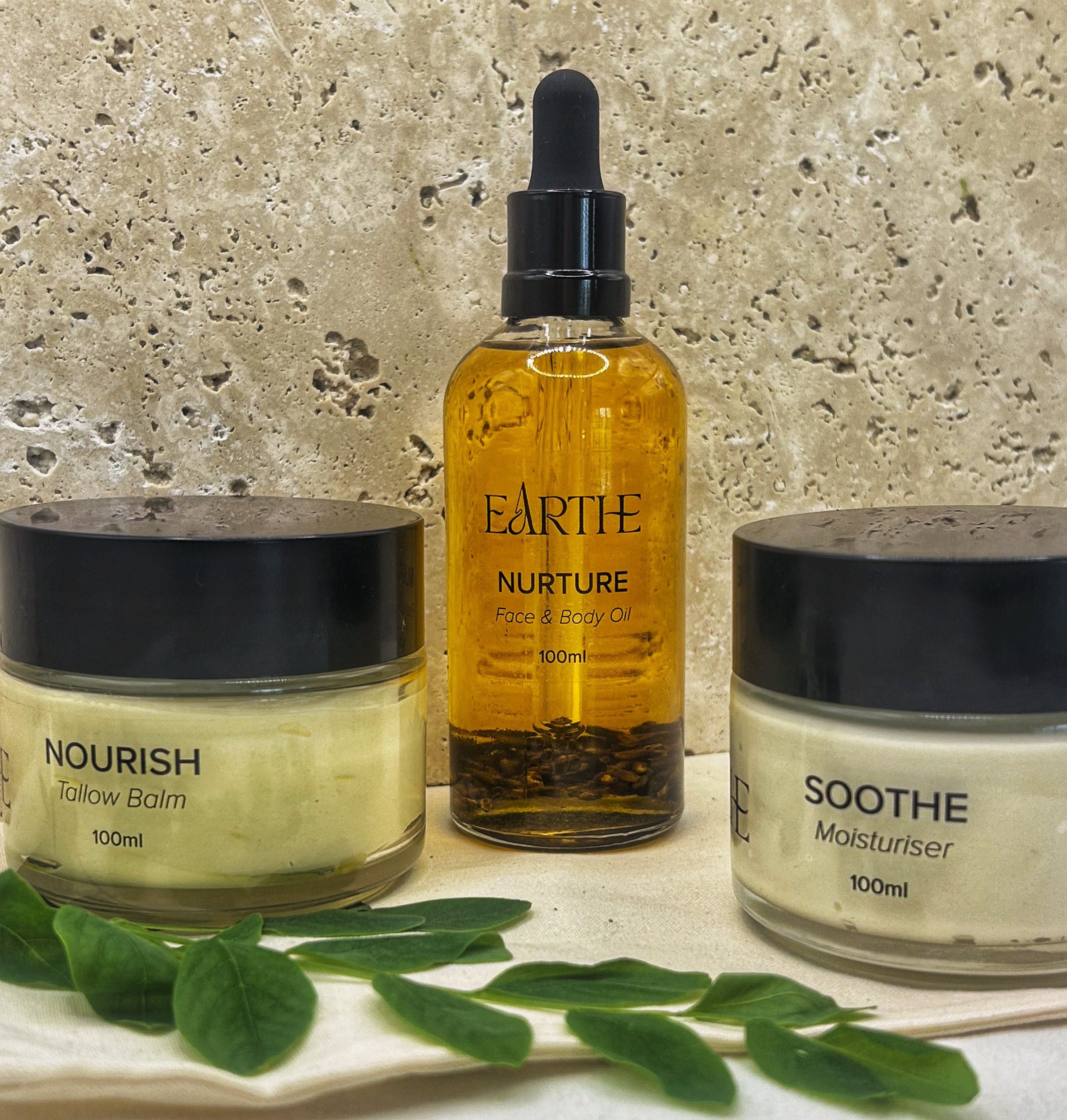 This three-step ritual blends pure nourishment and protection without a single harsh ingredient. The Nurture Botanical Oil hydrates and restores skin barrier balance, while the Soothe Aloe Moisturiser cools irritation and inflammation. The Nourish Whipped Tallow Balm locks in lasting moisture, delivering vitamins A, D, E & K for real skin repair and relief.